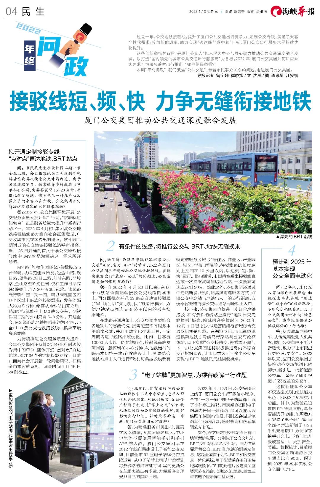 过去一年,公交地铁接驳线,提升了厦门公共交通出行竞争力;定制公交专线,满足了乘客 个性化需求;投放新能源车,助力实现“碳达峰”“碳中和”目标,厦门公交出行服务水平持续优化提升。 这些创新举措的背后,是…